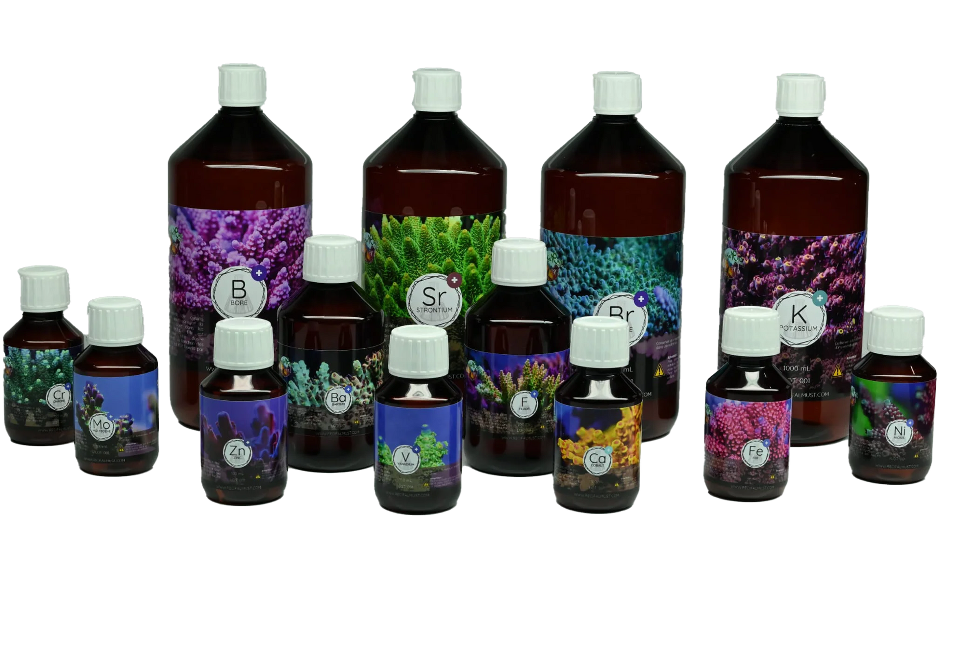 Ce kit complet d’oligo-éléments contient tous les minéraux essentiels à la croissance et à la santé des coraux :
